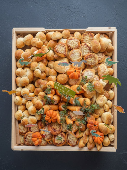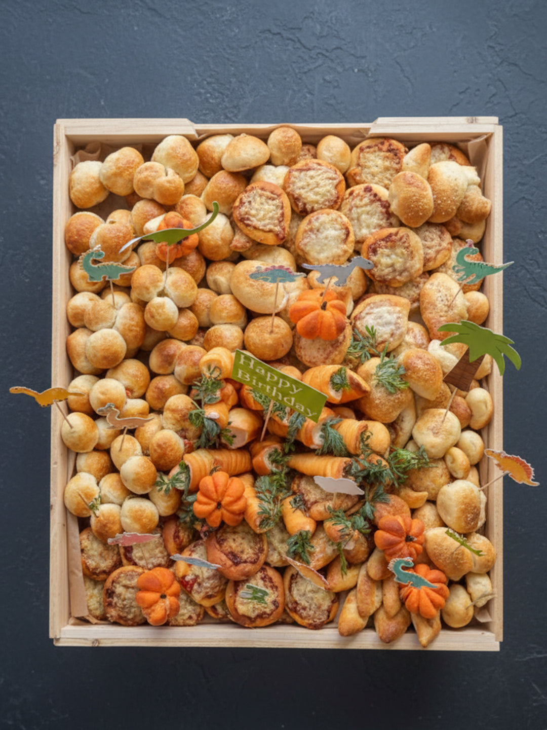 Mini pizza, mini spinach pie, mini cheese pie, mini olives